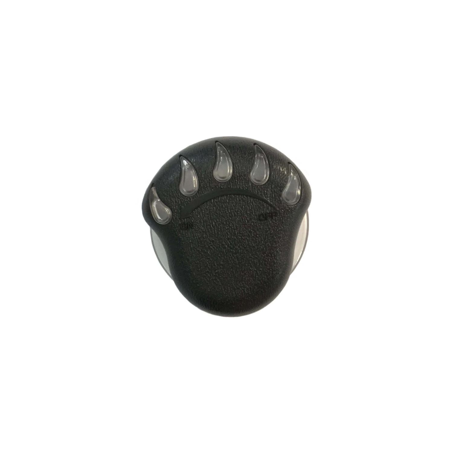 The Arctic Spas waterfall valve cap in bearclaw shape, with clear claws.