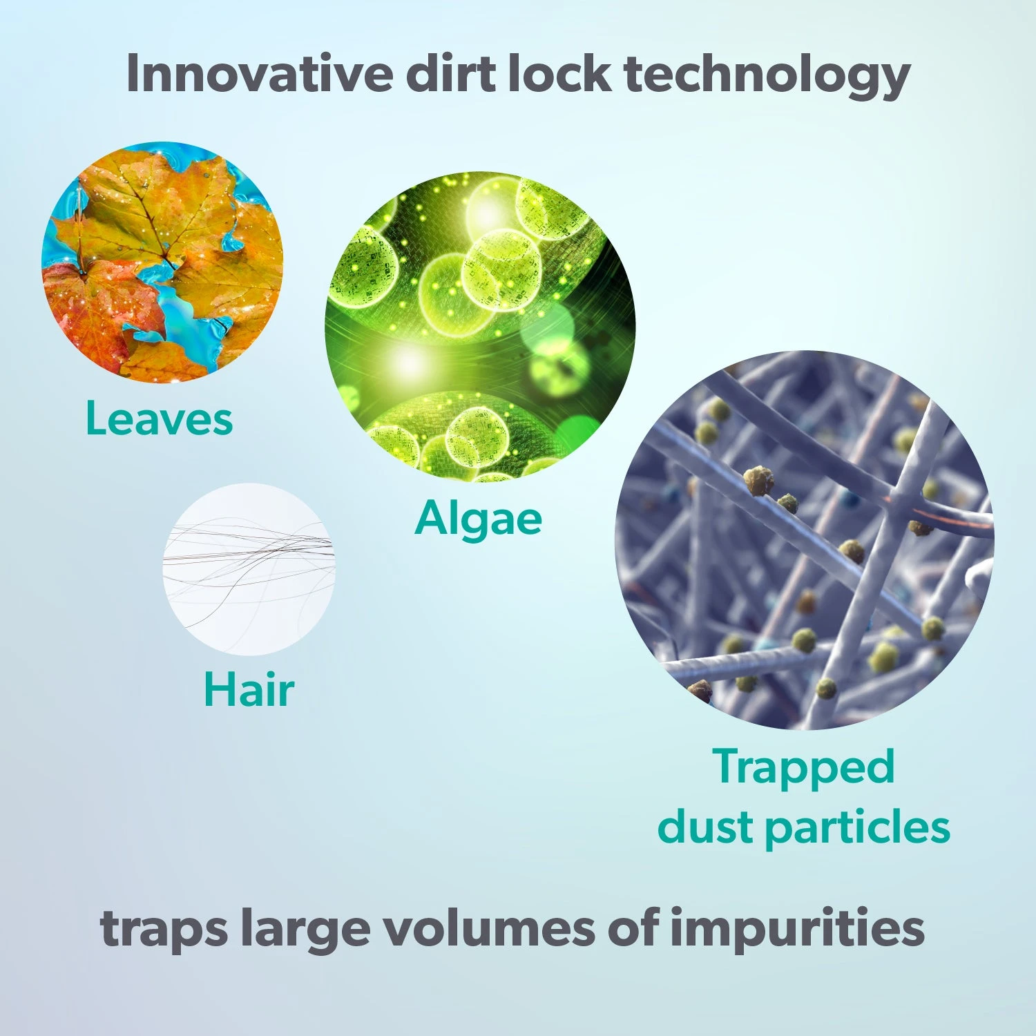 - Removes scum such as hair, dust, leaves and more