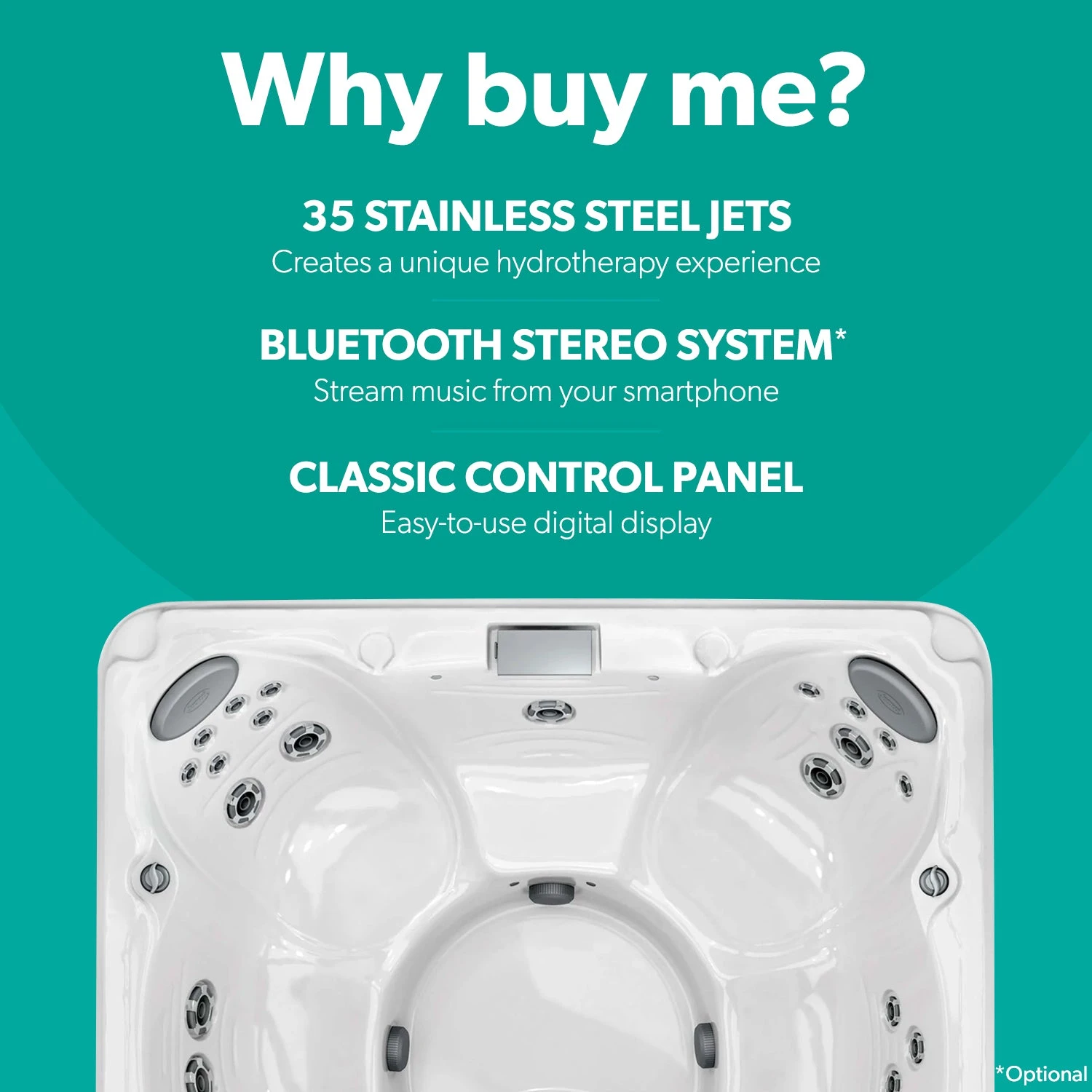 This modern single-button control panel with pre-set programs makes this hot tub user-friendly, from jet, pumps, and filtration to temperature and lighting. Plus, there’s a pre-programmed 2-stage filtration, including a top-loading filter system. It’s also compatible with the SmartTub™ system, which enables you to monitor and control your spa from your phone; it’s perfect with the optional BlueWave® Music System. – it makes a great first hot tub.