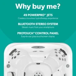 The J325IP™ is compatible with the SmartTub™ system, the easy way to control your hot tub through an app. A smart-access door provides easy entry to the internal components for servicing. Innovative SmartSeal® insulation is an environmentally friendly solution that reduces energy use by 20%, perfect for cold climates and saving you money. The ClearRay® and 4-stage filtration system creates superior water purity, reducing the need for water sanitisers by up to 50%.