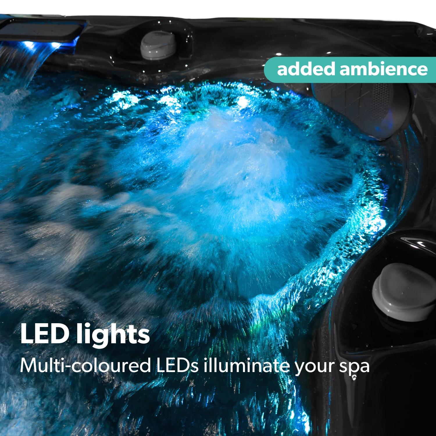 Transform your relaxation experience with underwater lights that offer multiple colours and settings to match your mood and create the perfect evening atmosphere.