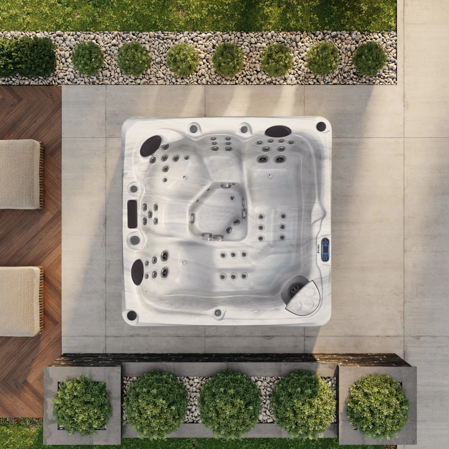 With seating for up to five people, including two loungers for ultimate comfort, the Outdoor Serenity is ideal for couples, families, or small gatherings. Its ergonomic seating and 50 powerful hydrotherapy jets provide a soothing massage experience, helping to ease muscle tension and promote relaxation.