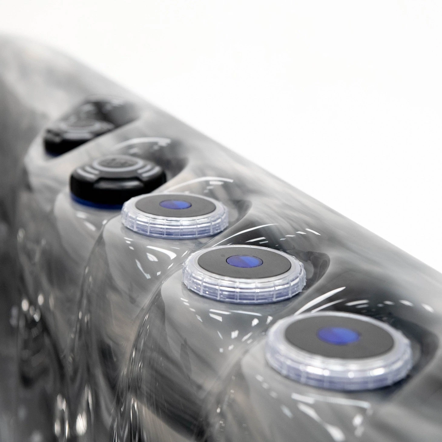 49 rotating and directional jets have been placed in a specific formation for various muscle groups in each seat so you can focus on key areas to suit your needs. Thereās even a selection of diverters placed around your hot tub to give you complete control of pressure and jet selection using the control panel. The LED-backlit water fountain adds to your well-being journey.